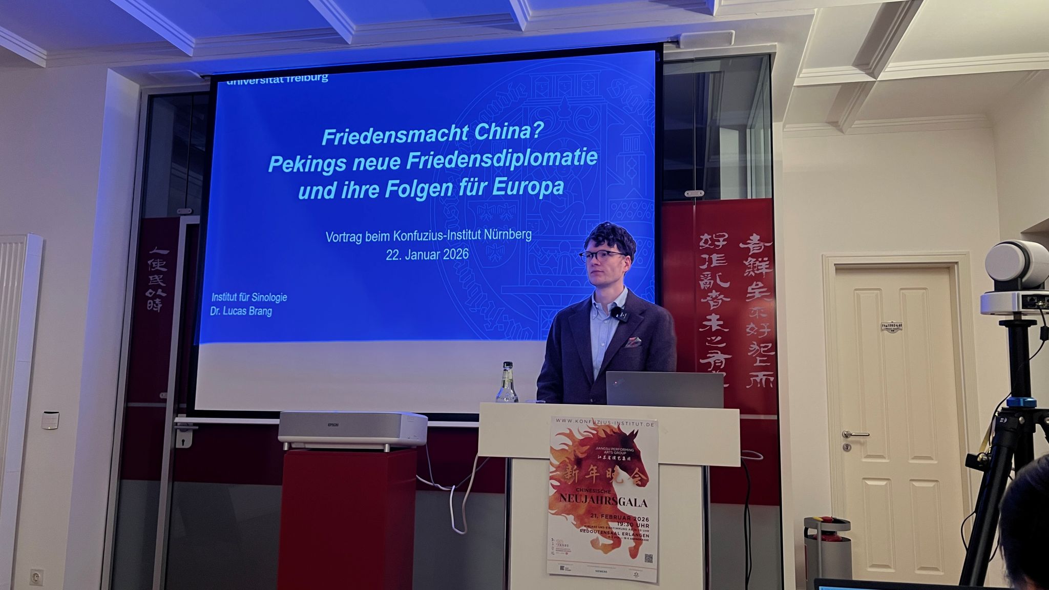 当地时间1月22日,纽伦堡-埃尔兰根孔子学院举办“和平力量?北京与欧洲”专题讲座。活动聚焦当代国际和平与安全议题,吸引了来自学术界及社会各界的52名听众参与。