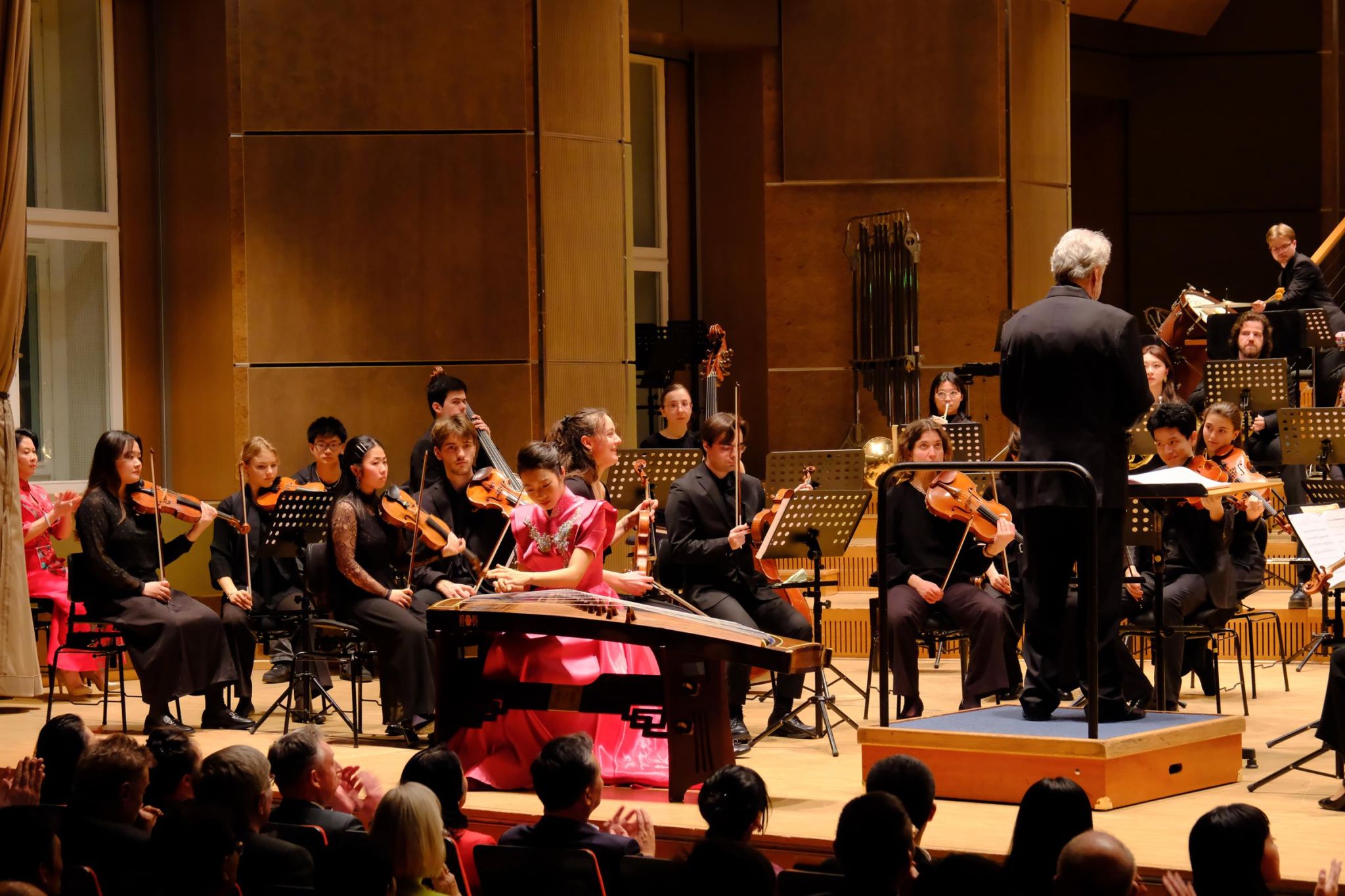 演出曲目兼顾中西,特色鲜明。音乐会以描绘江南意蕴的中国作品《入画江南》开场,随后纽伦堡音乐学院交响乐团演奏了安东·德奥夏克的《D大调第六交响曲》乐章。上半场尾声,竹笛与交响乐团合作的《乐春》清新灵动,展现了中西乐器的和谐对话。下半场,安东·德奥夏克深沉、悠远的《b小调大提琴协奏曲》与古筝协奏曲《如是》先后上演,古典与现代气息交织,为整场演出画上圆满句号。