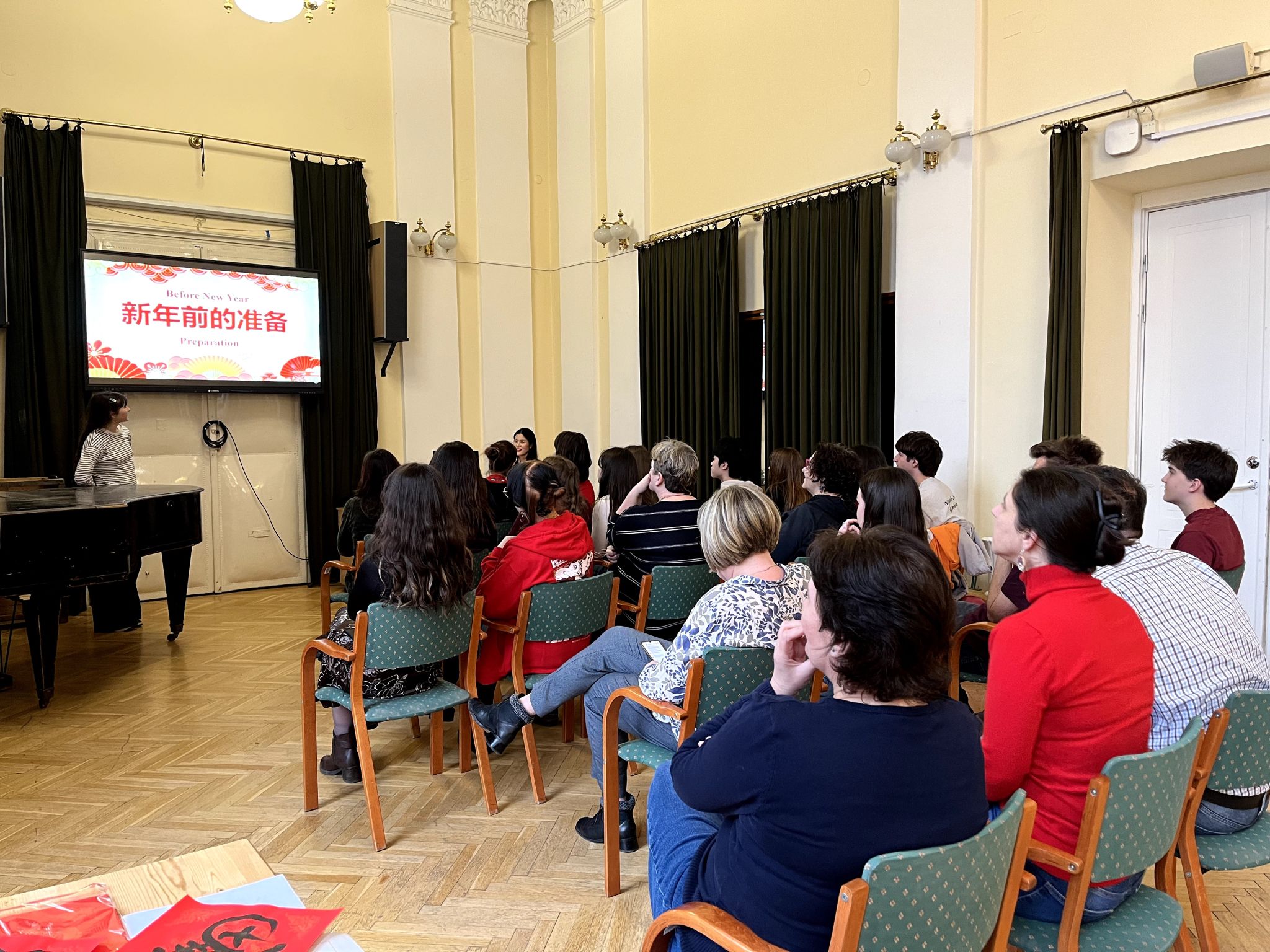 当地时间2月10日,罗兰大学孔子学院下设教学点莫大奇中学(Madách Imre Secondary School)成功举办春节文化活动。活动以中国春节为主题,通过知识讲座、文化体验等形式,吸引了该校约60名师生参与,该校校长亦到场体验。