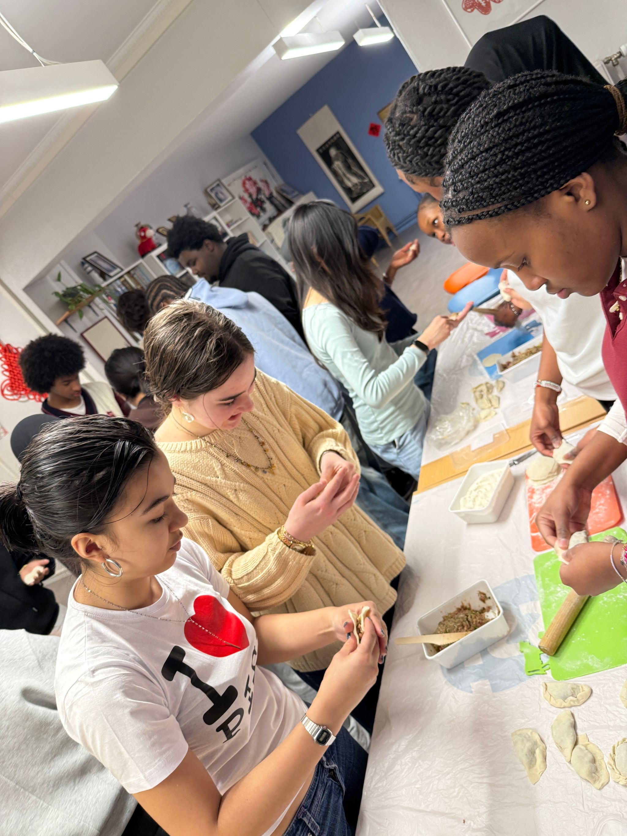 随后进入实践环节。教师现场演示揉面、擀皮及包制技巧,并指导学员们亲手操作。学员们分组合作,兴致勃勃地尝试制作各种造型的饺子,现场气氛热烈融洽。饺子包好后由教师统一煮制,热气升腾,香气四溢。孔子学院还贴心准备了醋、蒜泥等中式常见蘸料,让学员们能够更真实地体验在中国家庭中享用饺子的方式。