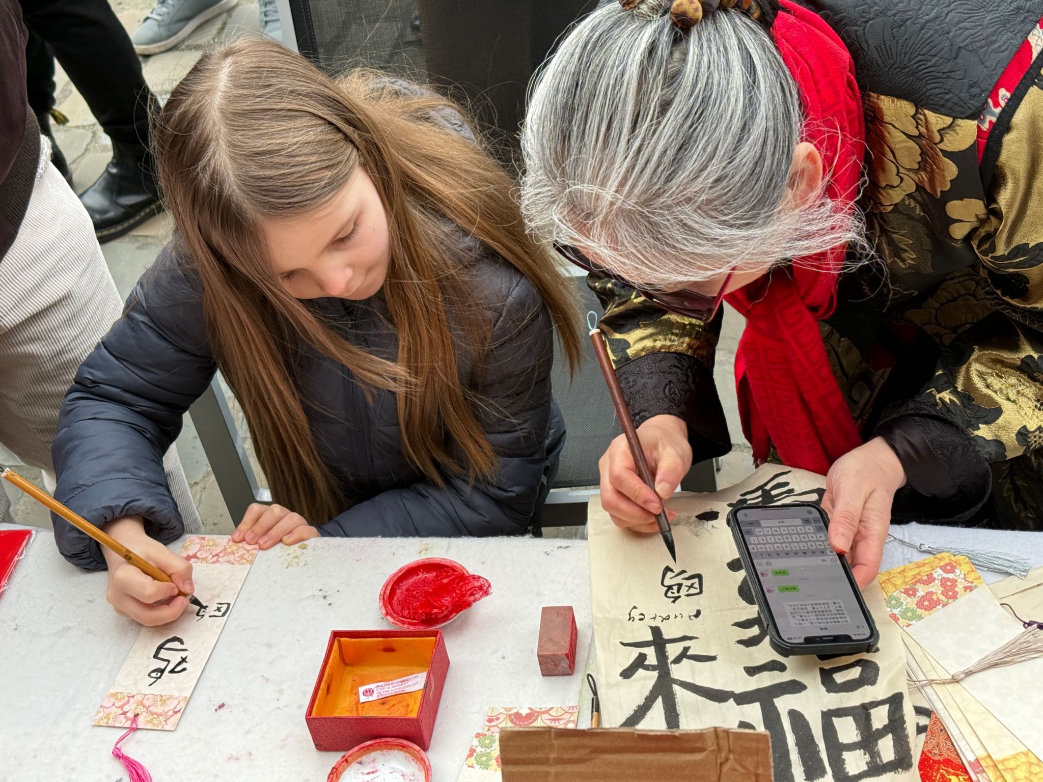 活动期间,列日孔子学院设置了剪纸、灯笼制作及书法书签制作等文化体验展位。在现场教师与志愿者的引导下,参与者们现场体验中国传统手工艺,感受中国春节喜庆祥和的节日氛围。许多参与者表示,通过亲身实践,对中国传统艺术有了更为直观和深入的认识。