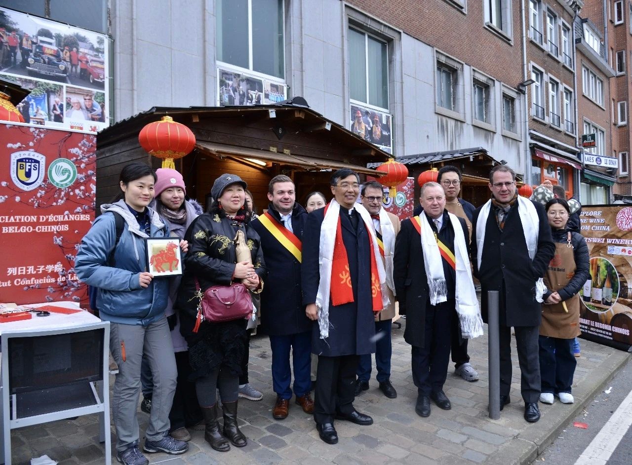 当地时间2月15日,中国驻比利时大使馆与旅比华侨华人社团联盟共同主办的“中国春节游园庙会”在比利时瓦隆大区那慕尔省迪南市成功举行。活动吸引了近五千名当地民众、旅比侨胞及各界友好人士参与,共同庆祝中国农历新年,体验春节文化。列日孔子学院作为受邀单位,通过文化展示与互动体验,向比利时民众展现了中华优秀传统文化的独特魅力。