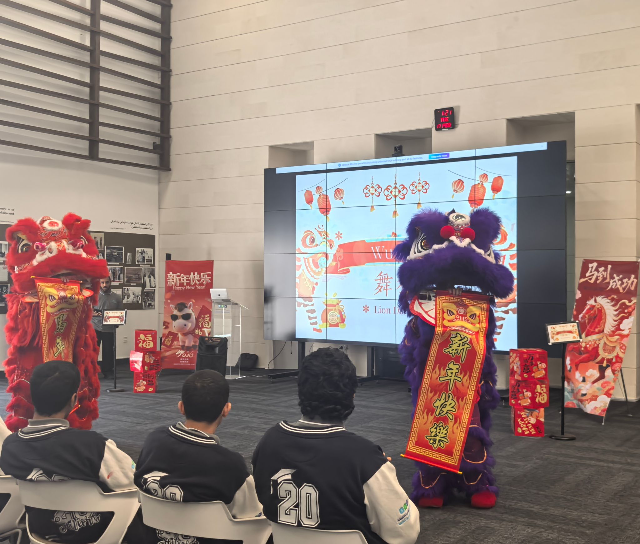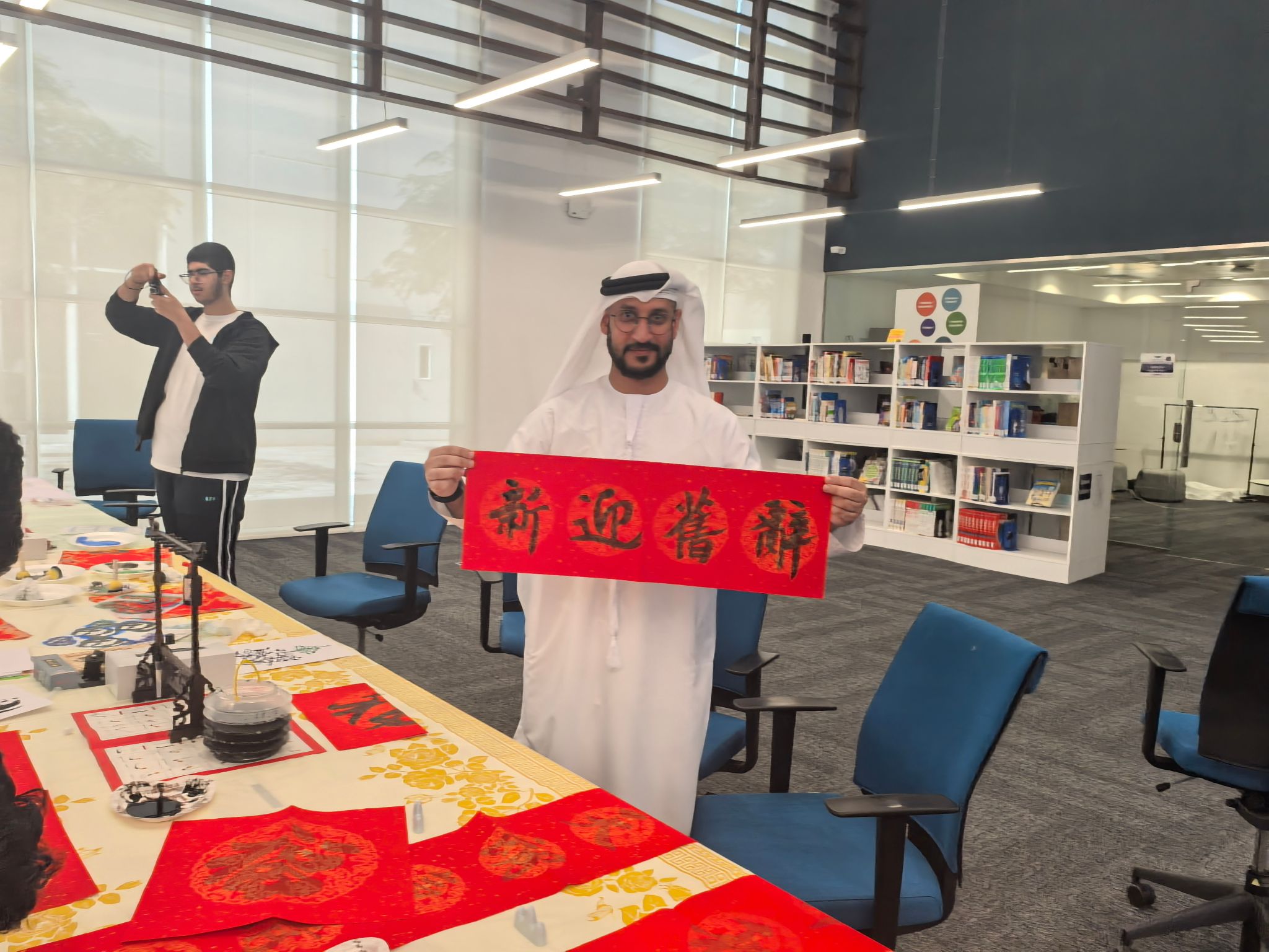 当地时间2月17日,扎耶德大学孔子学院新春系列活动走进应用技术高中巴尼亚斯校区(Applied Technology Schools Baniyas)男生校区。这是继2月16日在该校女生校区成功举办春节庆祝活动后,又一次面向全体男性学生的文化体验。ATS-Baniyas校长凯特·普朗布博士(Dr. Kate Plumb)、副校长莱亚莉·哈迈迪(Layali Hamaidi)及副校长马萨达·阿尔布雷基(Masada Albreiki)全程出席活动。
