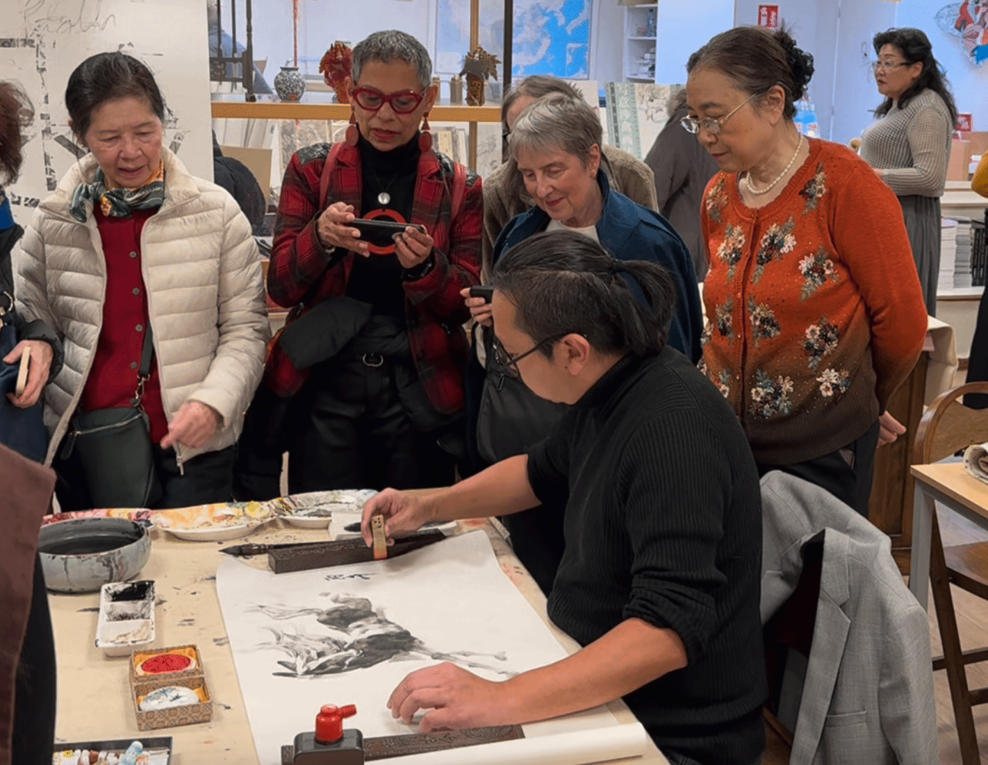 文艺展演后,丰富多彩的中国文化工作坊同步开展,围棋、中国书画、剪纸、吹墨画、京剧脸谱制作等体验活动吸引来宾踊跃参与。旅比中医陶丽玲现场开展义诊,带来中医体验与养生茶品鉴,传递中华传统养生文化。活动还设置春节知识有奖竞猜,寓教于乐,传播中国年俗文化,优胜者获得孔院赠送的新春好礼。最后,孔子学院和比中协会为中外来宾准备了丰盛、美味的中式自助餐。现场人头攒动,热闹非凡。