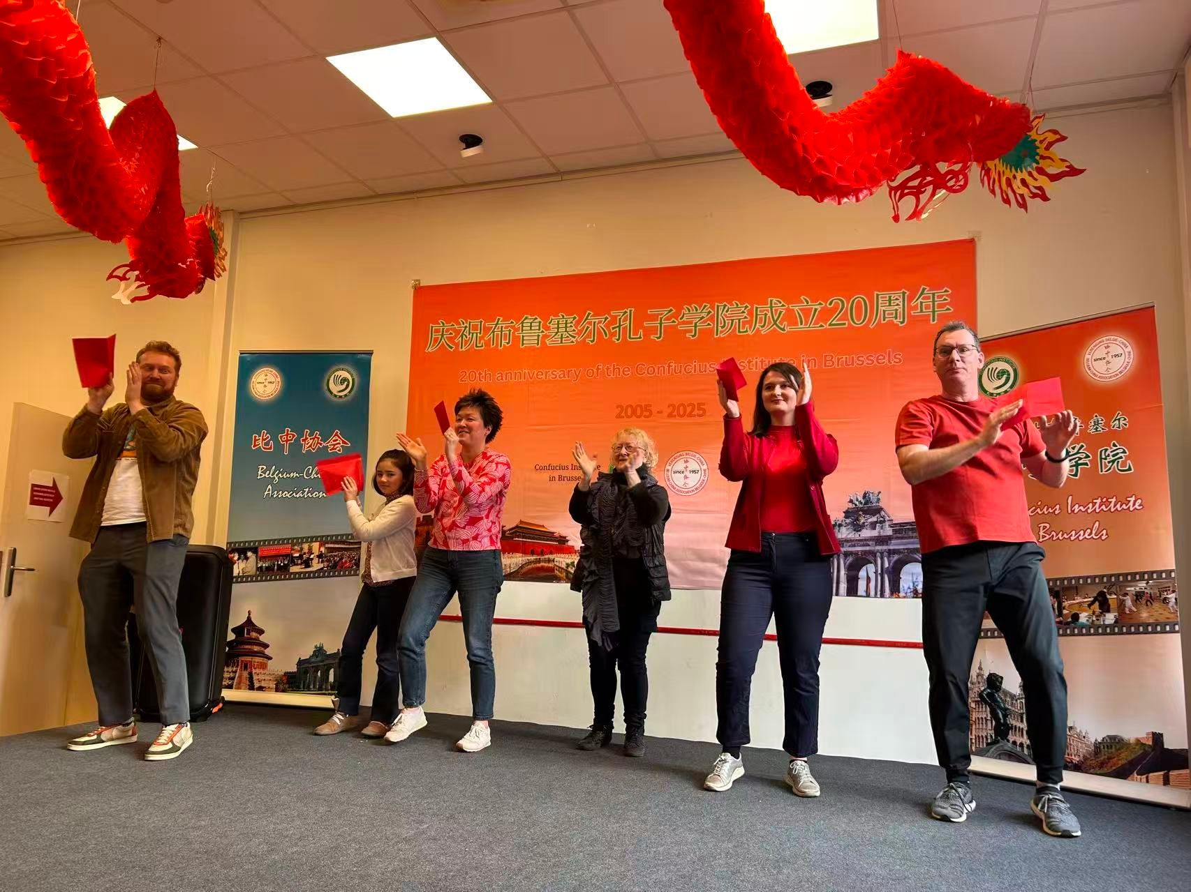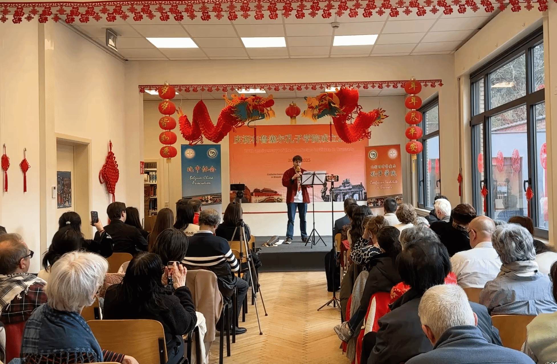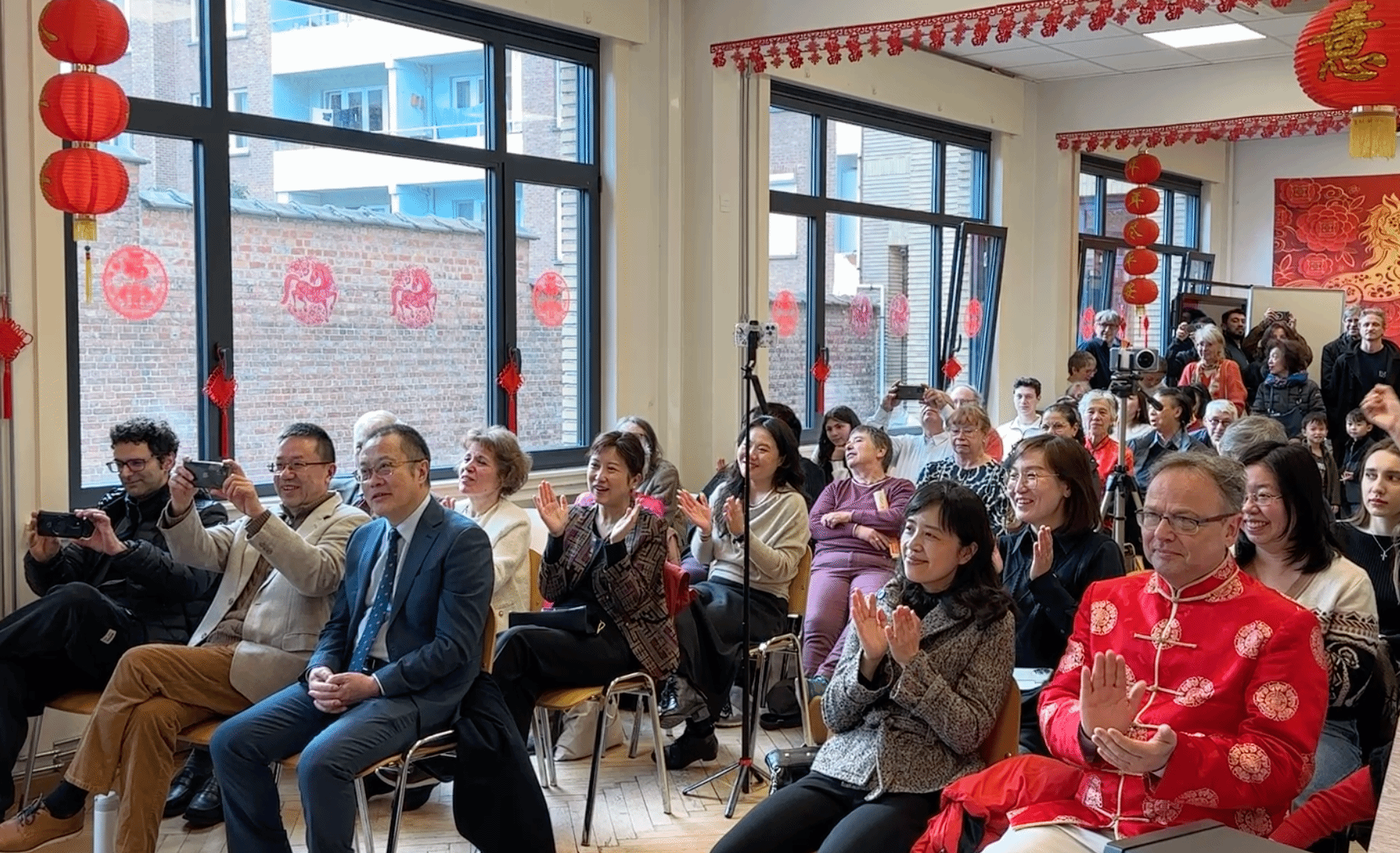 金戈铁马辞旧岁,灵骏奔腾迎新春。当地时间 3 月 1 日下午,布鲁塞尔孔子学院 2026 马年新春联欢活动温情启幕。中国驻欧盟使团公使衔参赞马涛、中国驻比利时大使馆文化参赞张庆华、布鲁塞尔孔院所在地斯哈尔贝克市副市长范登侯(Van den Hove Quentin)、比利时中国学生学者联合会主席张婷等嘉宾应邀出席。布鲁塞尔孔院中方院长傅荣教授、比方院长廖胜天(Cedric de Mol)、比中协会副主席菲利普・勒希安(Philippe Lechien)、协会秘书长米娅(Mia Meersman)等与来各界逾 200 位来宾欢聚一堂,共庆马年新春。