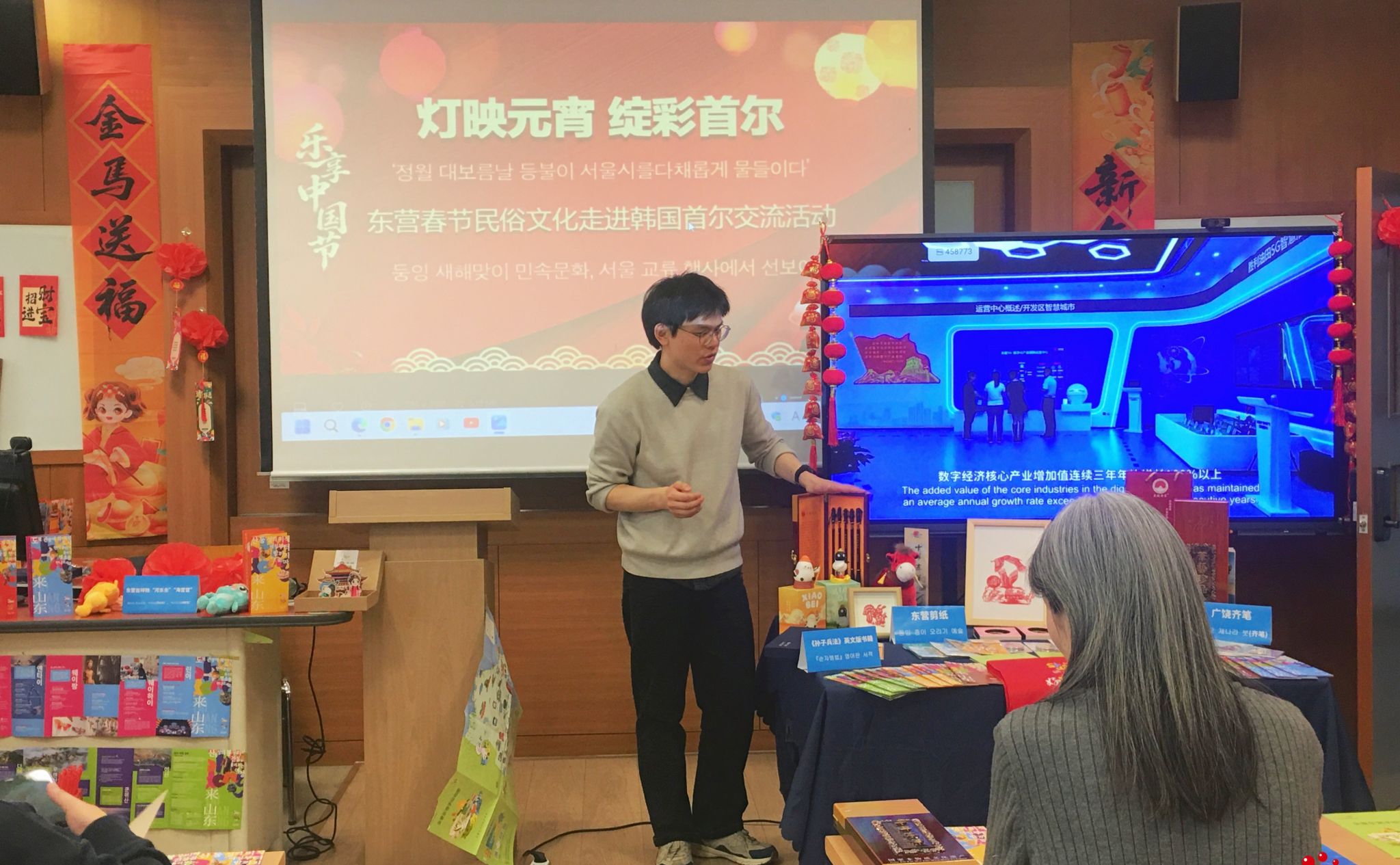 当地时间3月5日,韩国外国语大学孔子学院(以下简称“韩外大孔院”)成功举办“灯映元宵 绽彩首尔”中国传统元宵节民俗文化交流活动。活动由孔子学院教师左维刚主持,韩外大孔院中方院长闫冬、韩方副院长尹翡翠、孔院全体教师及首尔地区中国语言文化爱好者近三十人参与活动。