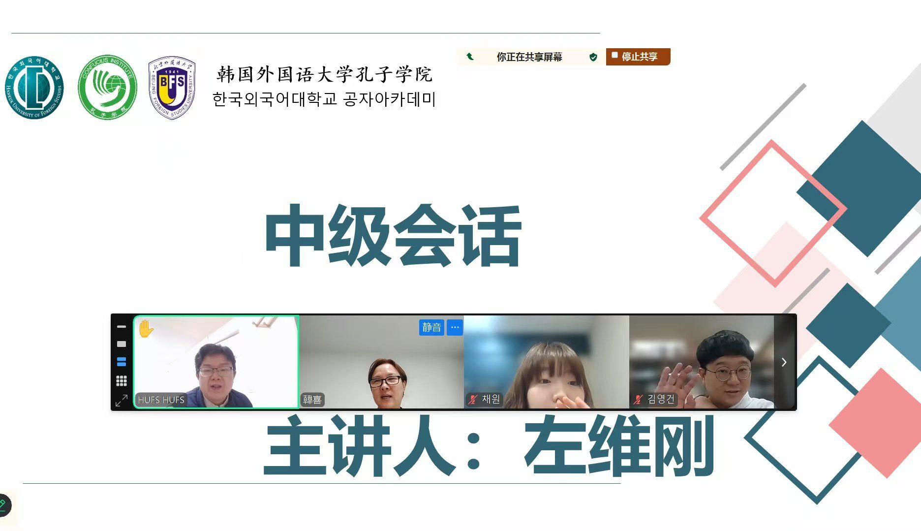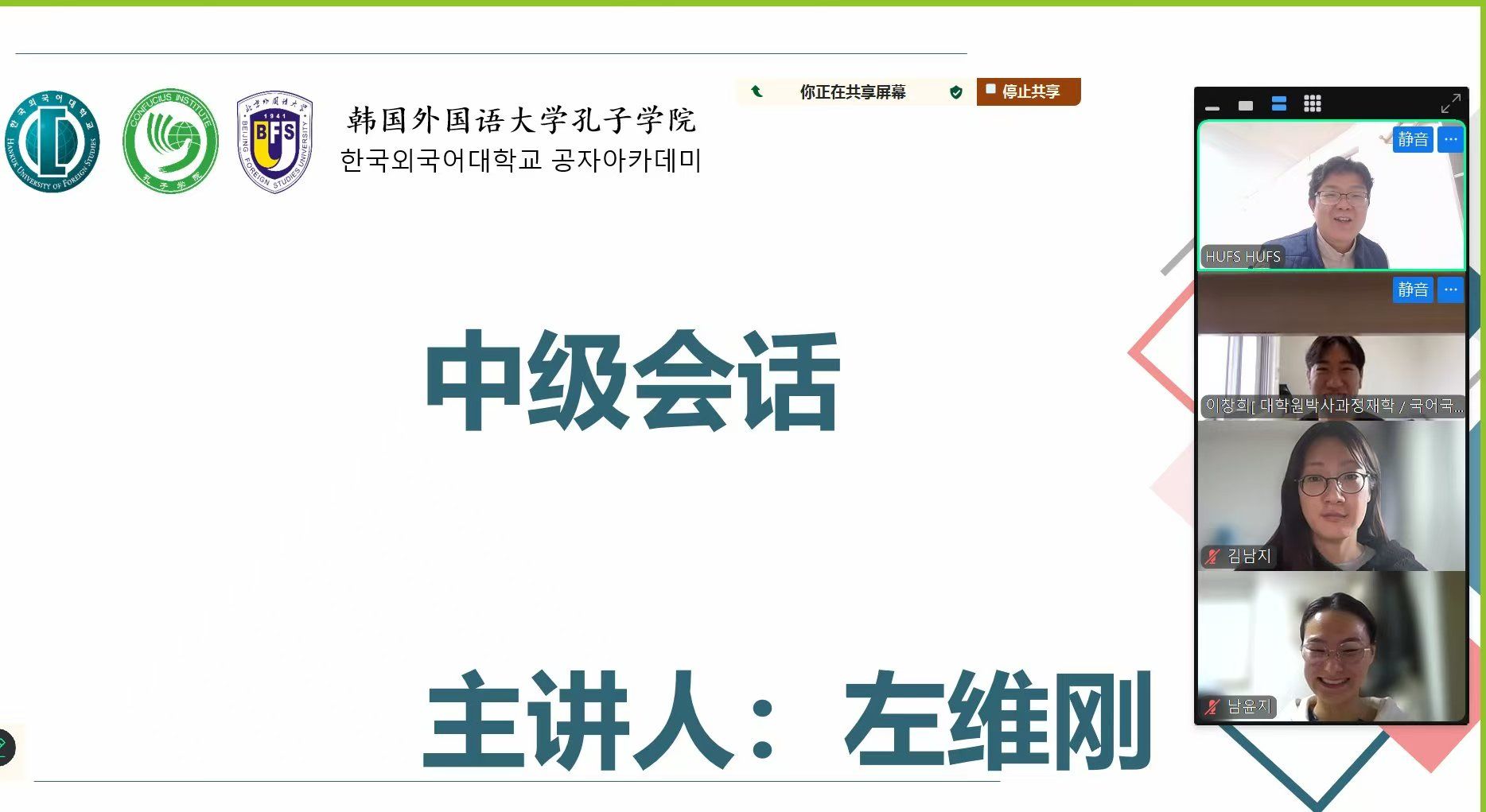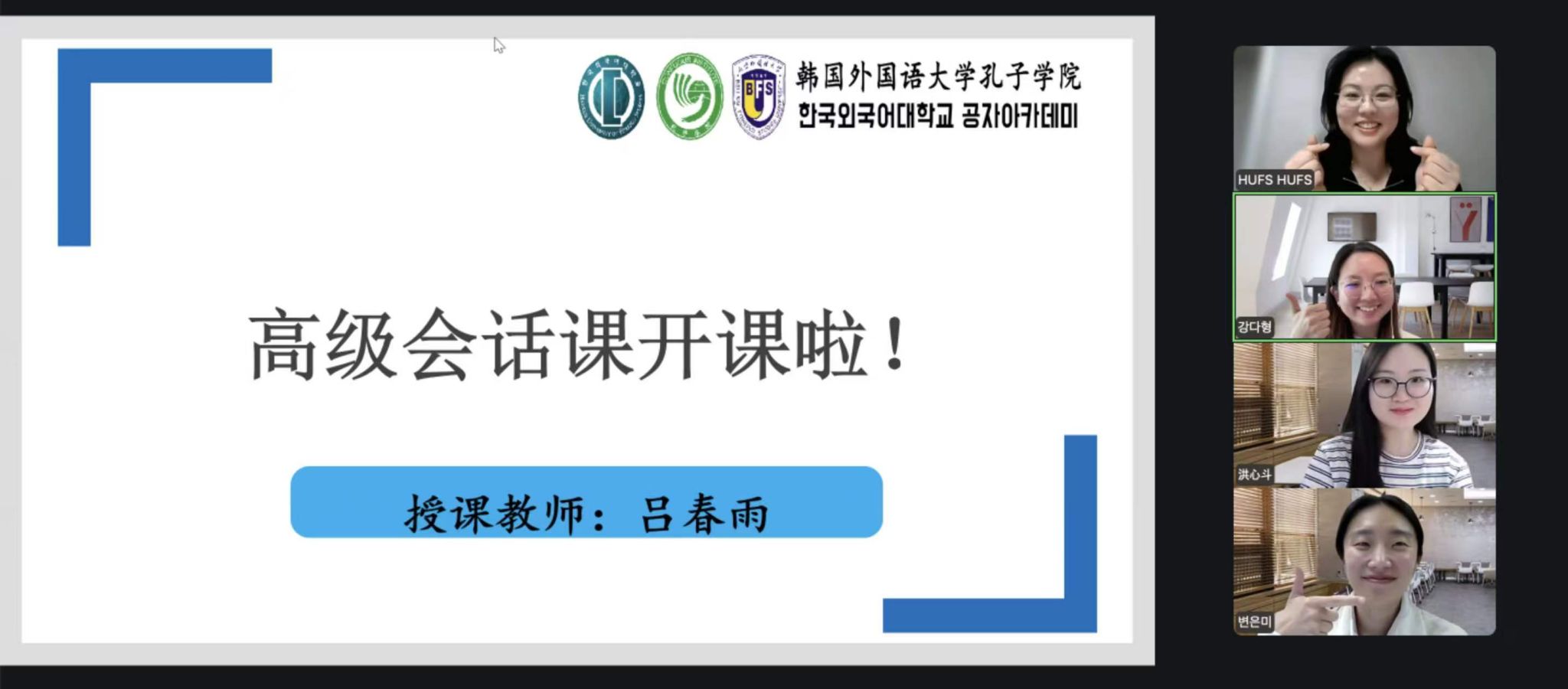 本学期,韩外大孔院围绕不同学习阶段和目标,系统开设了多层次、多方向的汉语课程。课程内容丰富,涵盖“生生汉语(入门)”“汉语会话(中级)”“汉语会话(高级)”以及“HSK6级”等多门课程,覆盖从初级到高级的不同学习需求。其中,初级课程旨在帮助学习者夯实语言基础,中高级会话课程着重提升学生的表达能力与跨文化交流能力,而HSK课程则为有考试和升学需求的学生提供系统指导。