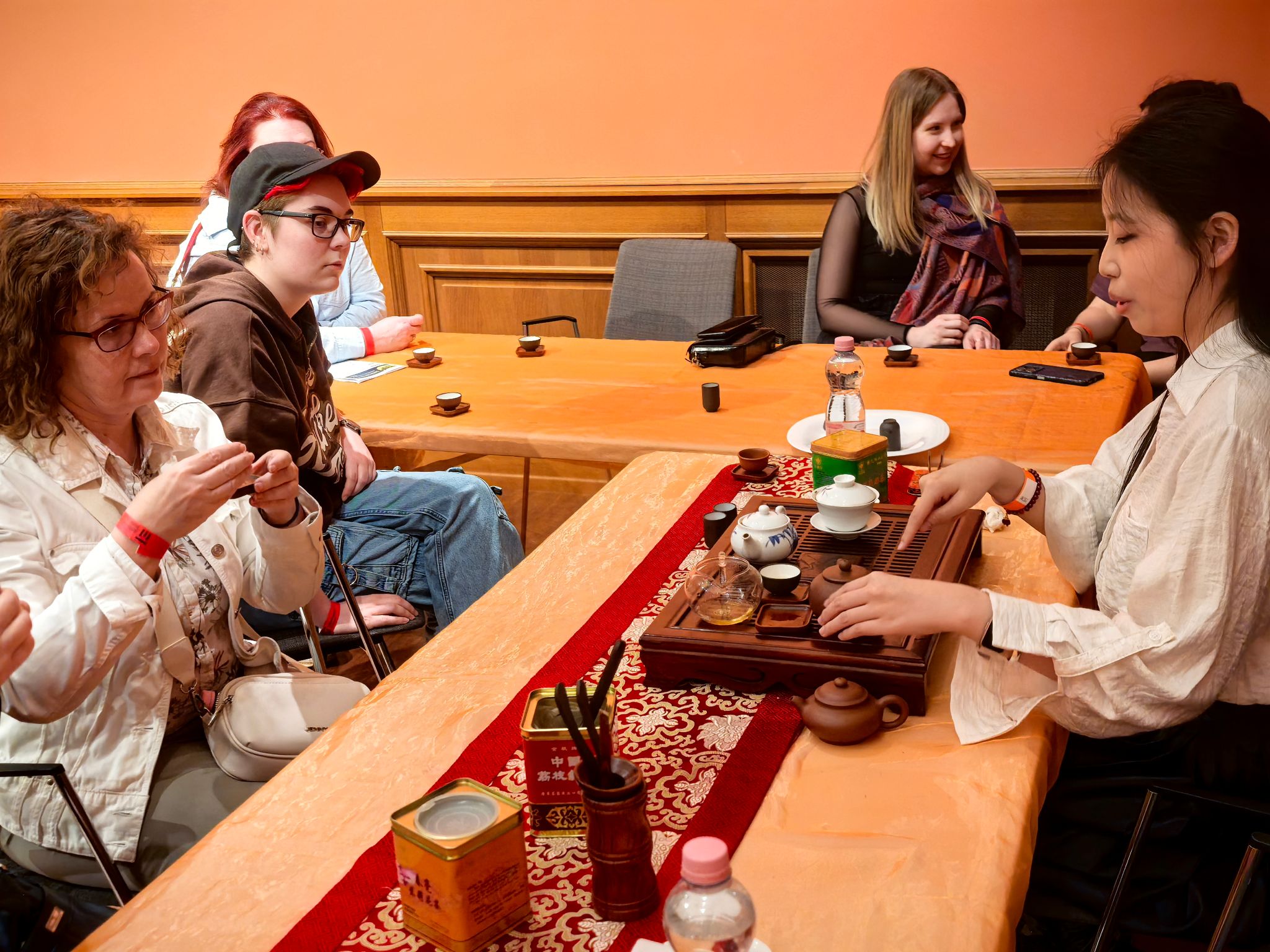 当地时间3月11日,罗兰大学孔子学院受邀参加布达佩斯美术博物馆“兵马俑特展”相关文化活动。作为展览的重要组成部分,孔子学院在现场设立了茶艺展示与中国书法文化体验区,并组织浙江音乐学院学生进行表演,吸引了数百名当地文化爱好者参与互动。