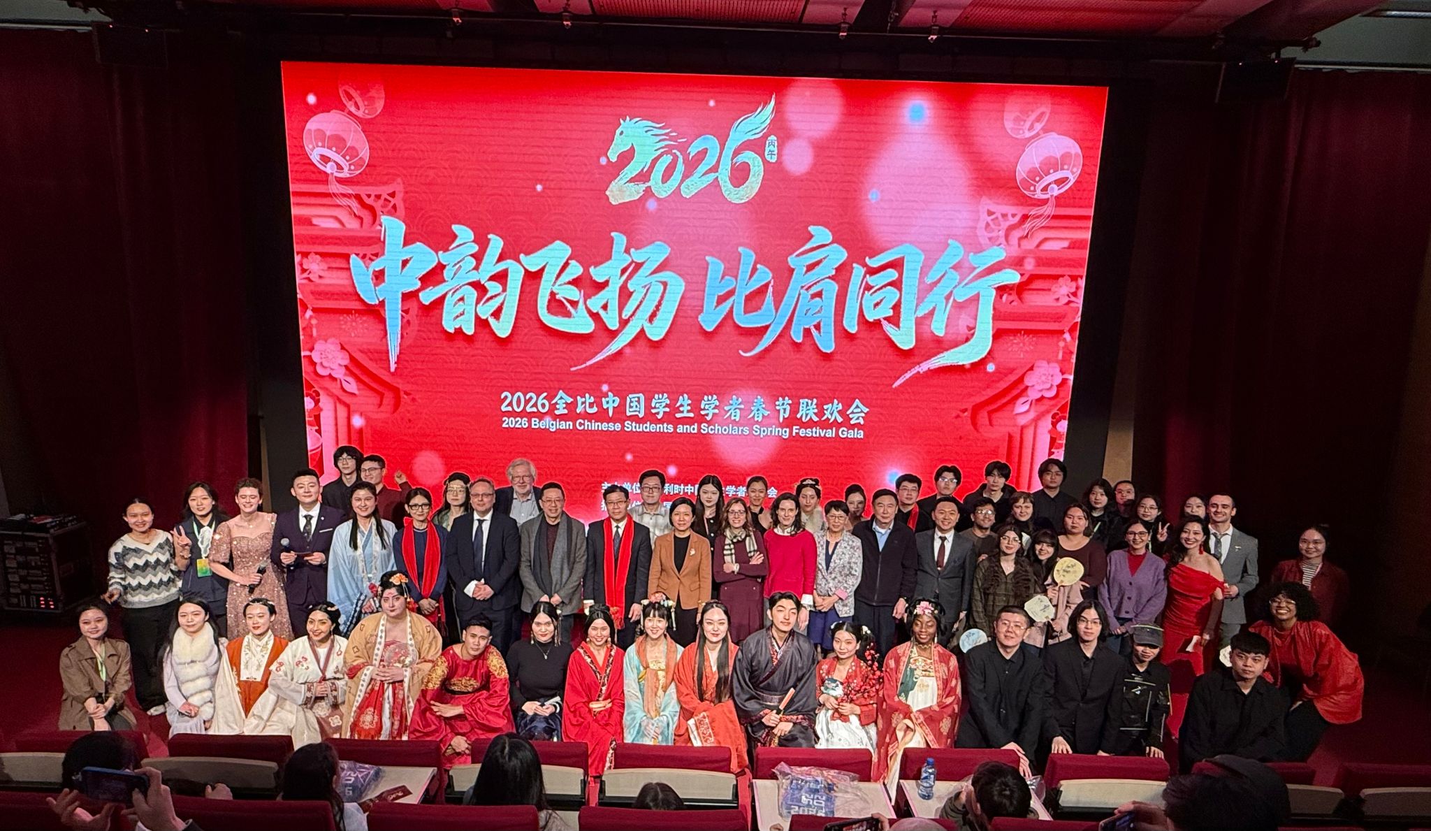 当地时间2月25日,由比利时中国学生学者联合会主办的2026年全比中国学生学者春节联欢会在布鲁塞尔中国文化中心成功举行。中国驻比利时大使费胜潮、布鲁塞尔孔子学院中方院长傅荣、比中协会副主席菲利普·勒希安等嘉宾,与在比中国学生学者、旅比侨胞及各界友人欢聚一堂,共庆农历丙午马年新春。