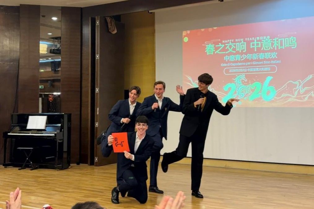 活动中,来自罗马大学孔子学院下设罗马国立住读学校孔子课堂的四名学生齐正会(Paolo Caccialupi)、齐锐(Ruggero Cirillo)、王保罗(Paolo Re)和罗迪(Lorenzo Rosati)表演了群口相声《新春贺喜》。他们以自然、幽默和热情的表演,从第一句台词开始就吸引了观众,会场笑声不断,生动展现了语言作为连接彼此、分享快乐的桥梁作用。