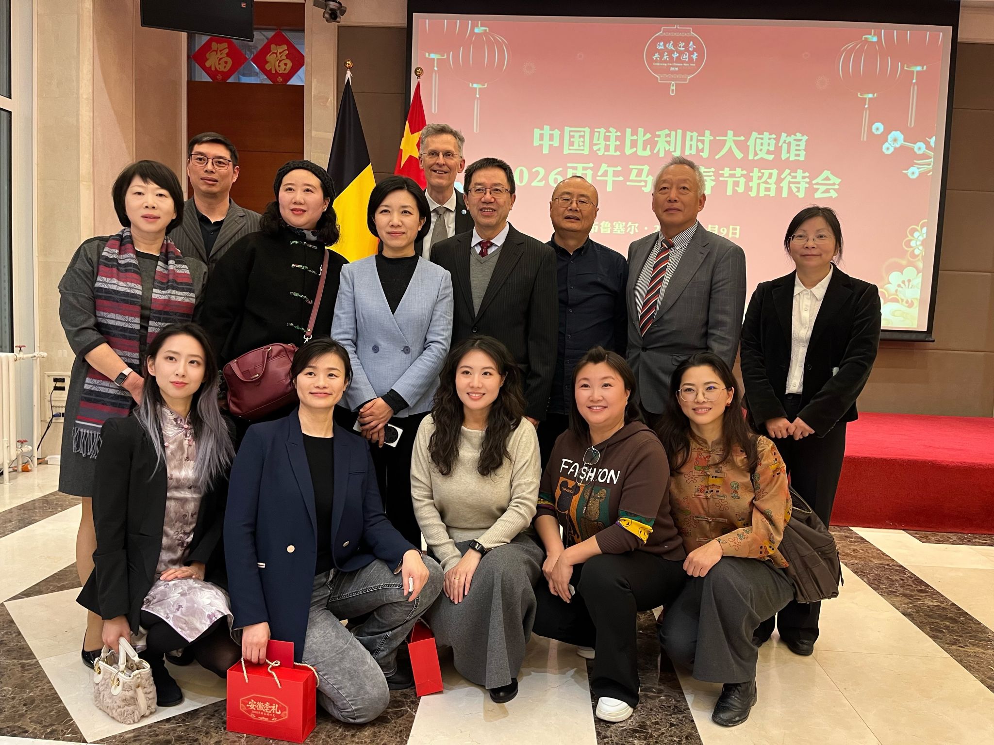 当地时间2月9日,中国驻比利时大使馆举办2026丙午马年春节招待会,旅比华侨华人、中资机构、留学人员代表等200余人欢聚一堂,共庆新春。布鲁塞尔孔子学院中方院长及中文教师代表应邀出席了活动。