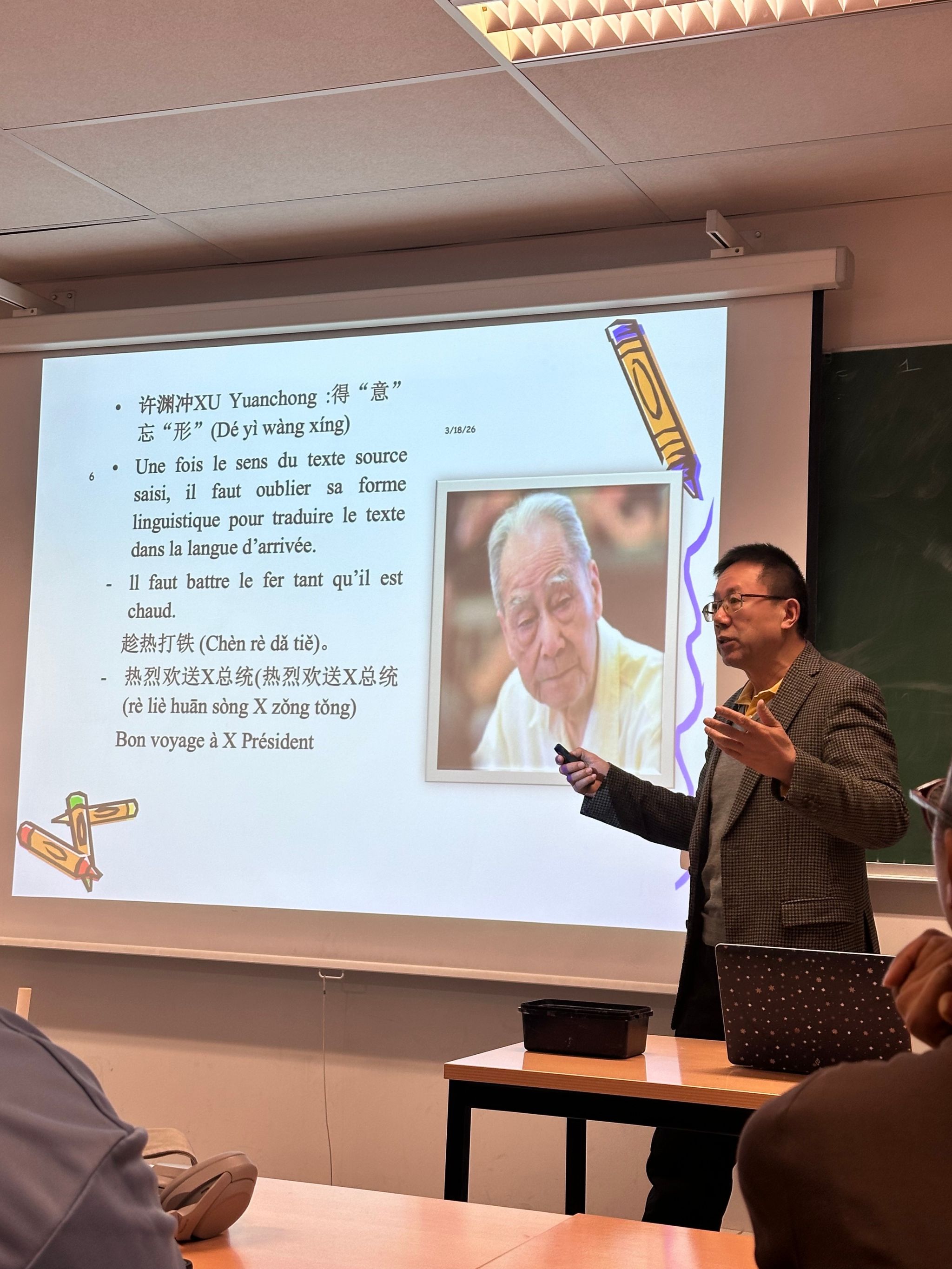 傅荣教授结合自身丰富的翻译实践与教学经验,以汉译法语为切入点,通过丰富的译例,深入浅出地阐释了其翻译理念与方法论,探讨了中法语言互译中的难点与创造性策略。主持讲座的鲁汶大学翻译学院负责人普泉熙(Patricia Giot)表示,傅荣教授的讲座兼具理论深度与实践启发性,有效深化了师生对翻译学科的理解,促进了中欧翻译学界在跨文化交际领域的对话。听众普遍认为,讲座内容扎实、视角新颖,对提升翻译实践与跨文化理解具有重要参考价值。