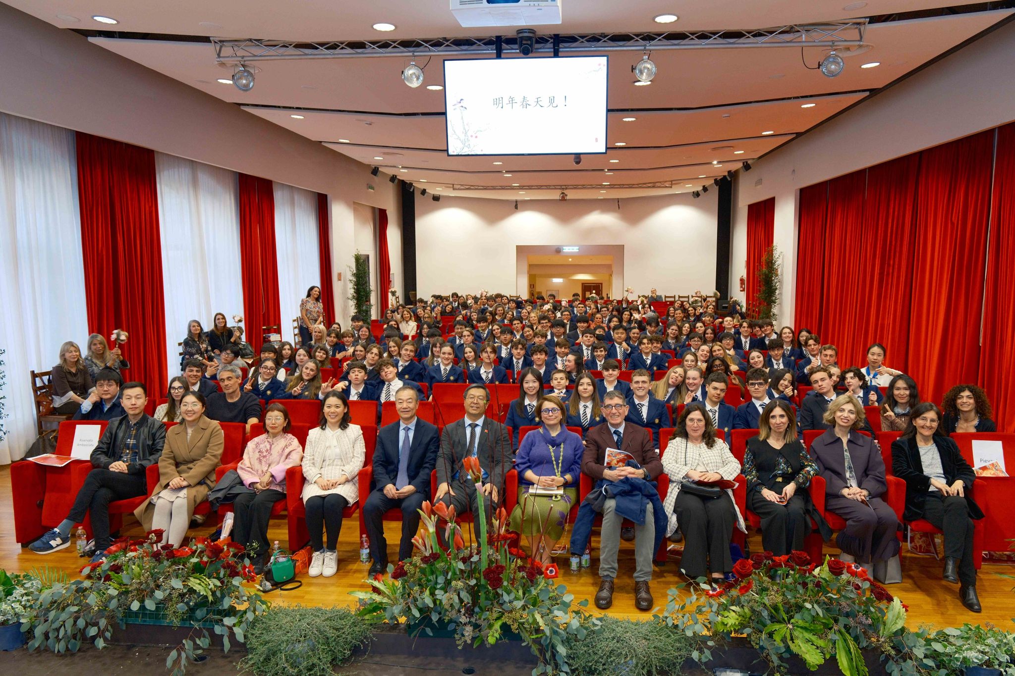 活动最后,中国驻意大利大使馆向学校捐赠了一批涵盖文学、文化及学习读物的中文书籍,为中文教学提供了宝贵资源。嘉宾与师生代表合影留念,活动在热烈友好的氛围中圆满落幕。
