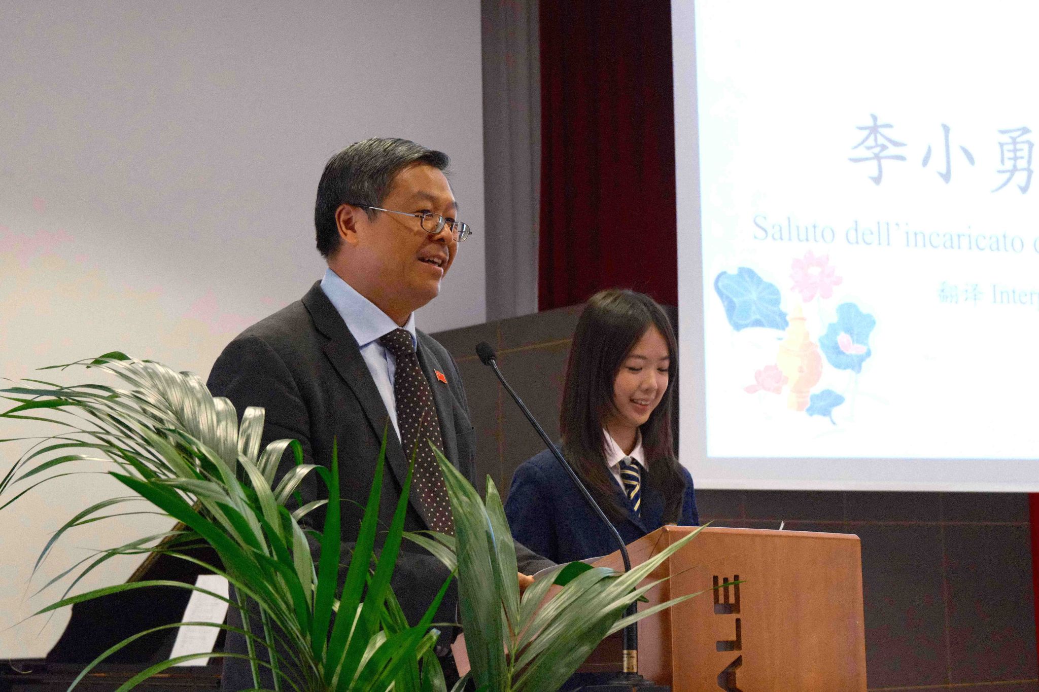 在礼堂举行的正式活动中,维古娜在欢迎辞中表示,马年象征着骐骥驰骋,体现了积极进取的精神,希望学生们充分发挥才能,与时代同行。李小勇在致辞中充分肯定了学校的中文教育成果,勉励学生们志存高远,成为中意友好的传承者与文化使者。马西尼回顾了孔子课堂17年来的发展历程,并表达了对未来发展的期待。