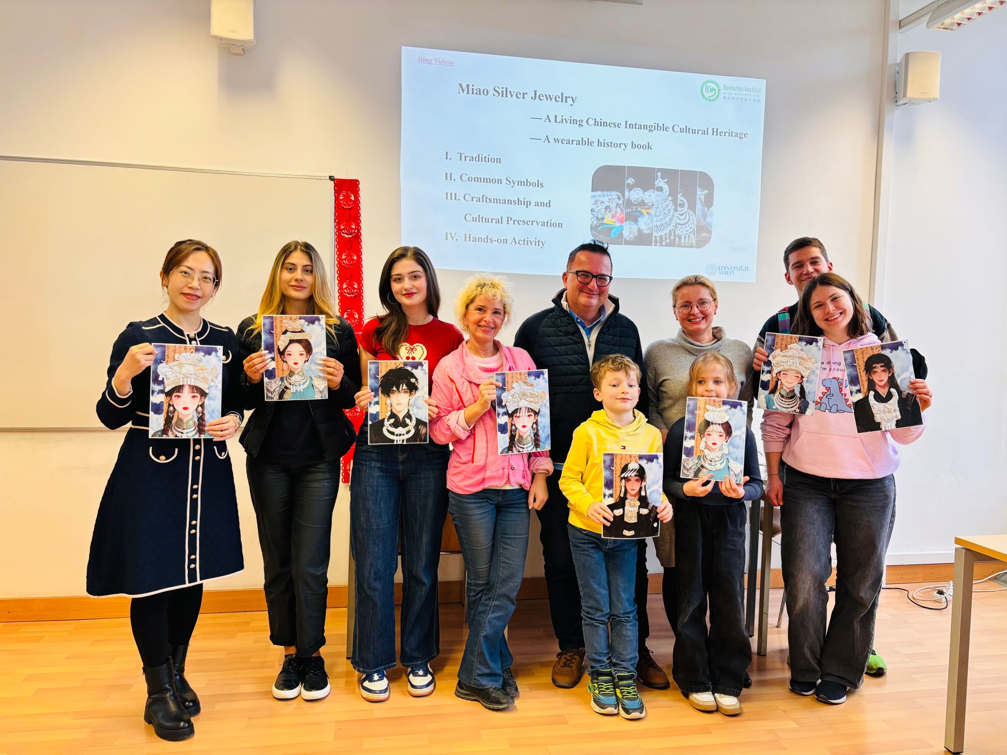 当地时间3月20日,维也纳大学孔子学院举办“非遗苗族银饰”文化体验工作坊,吸引了9位当地文化爱好者参与。