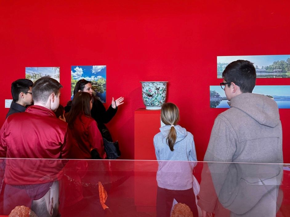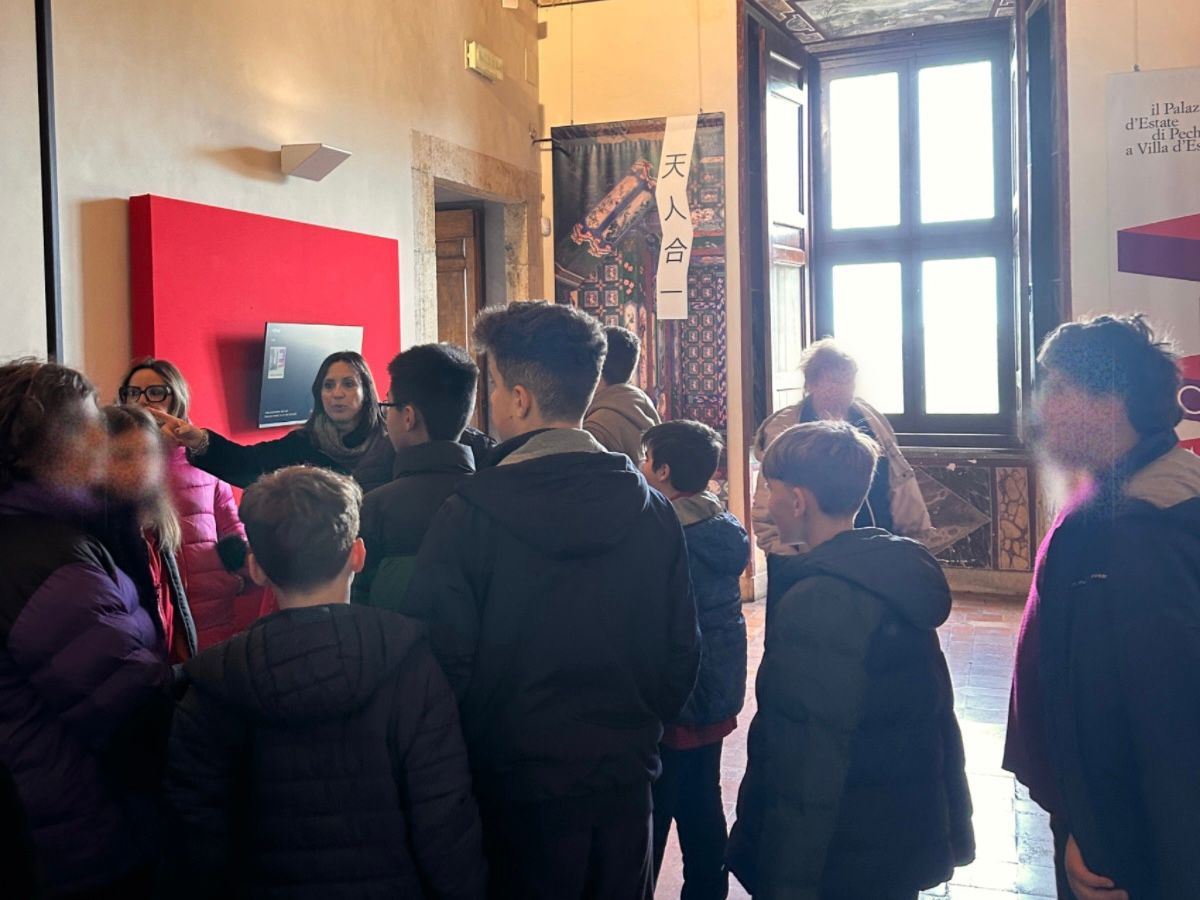 当地时间3月31日,罗马大学孔子学院下设的蒂沃利国立住读学校孔子课堂组织21名师生,前往世界文化遗产埃斯特庄园,参观正在那里举办的“天人合一”颐和园园林建筑艺术特展。
