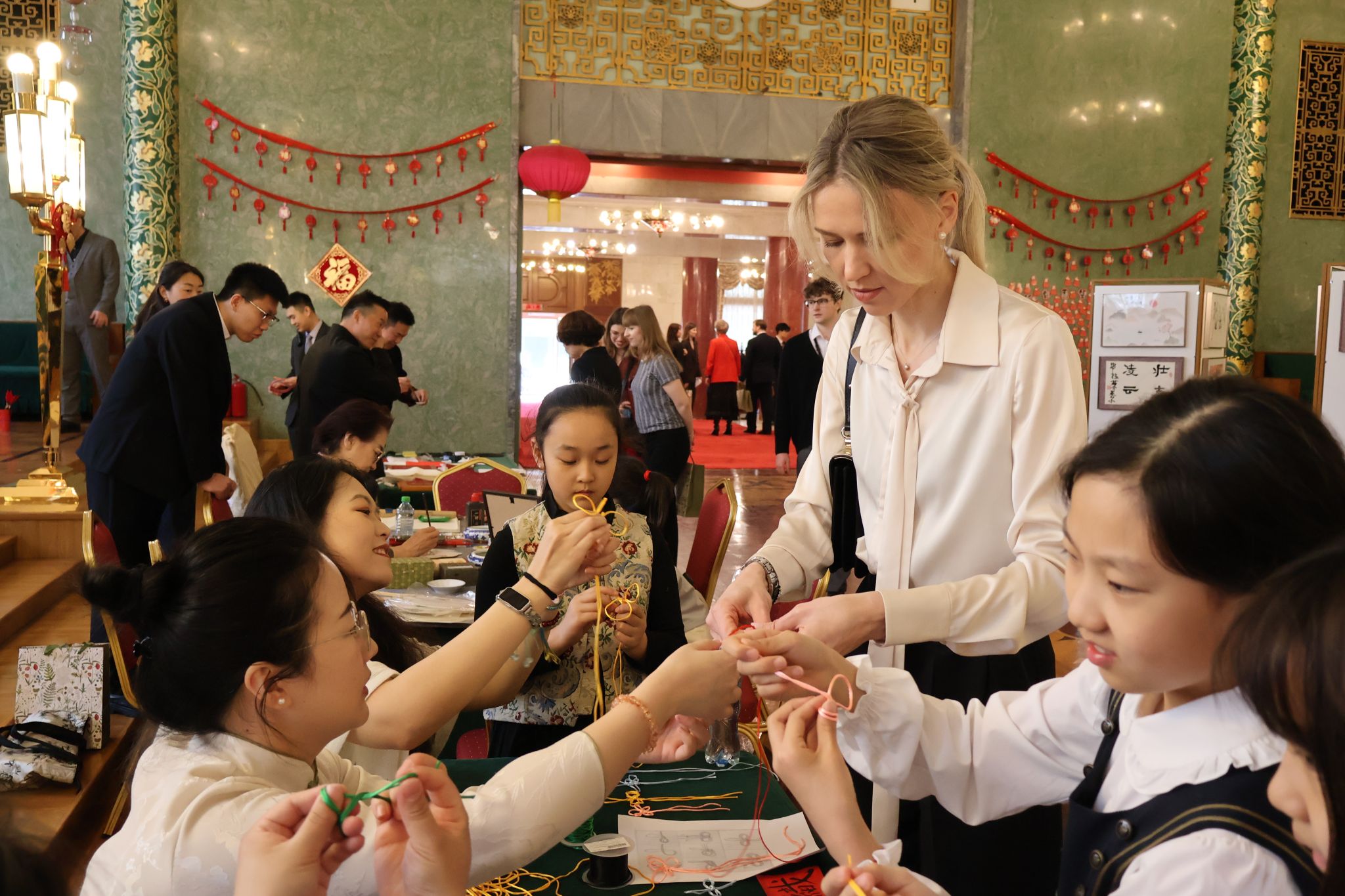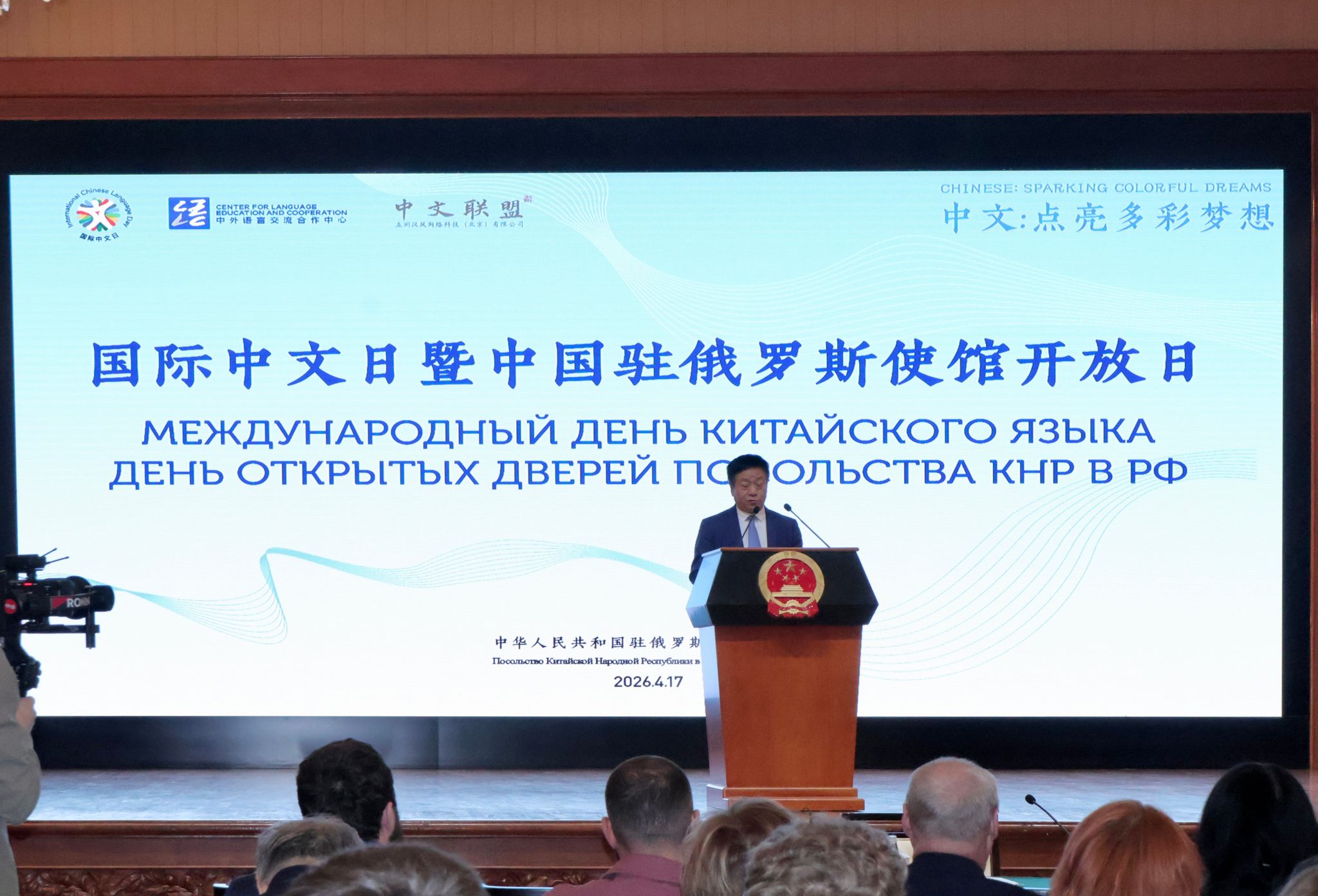 当地时间4月17日,为庆祝2026年“国际中文日”,中华人民共和国驻俄罗斯联邦大使馆教育处举办“国际中文日”暨使馆开放日活动。莫斯科国立语言大学孔子学院(以下简称“莫语大孔院”)受邀参加,并在现场设置了书法、剪纸、编织和雕版印刷四项沉浸式文化体验展台。